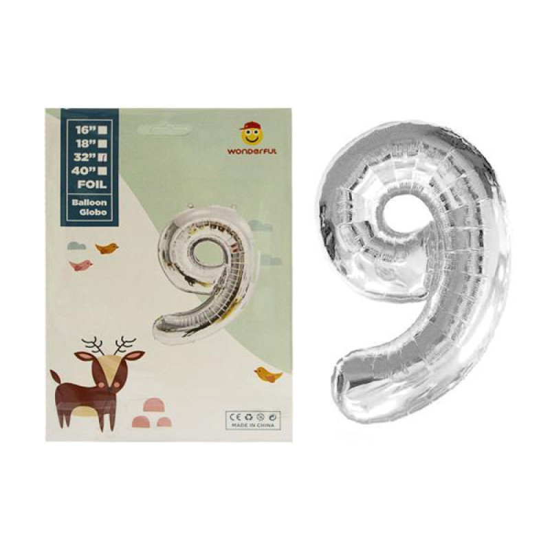 Кулька цифра 75см, в індивідуальній упаковці, срібло, пак. 20*14см