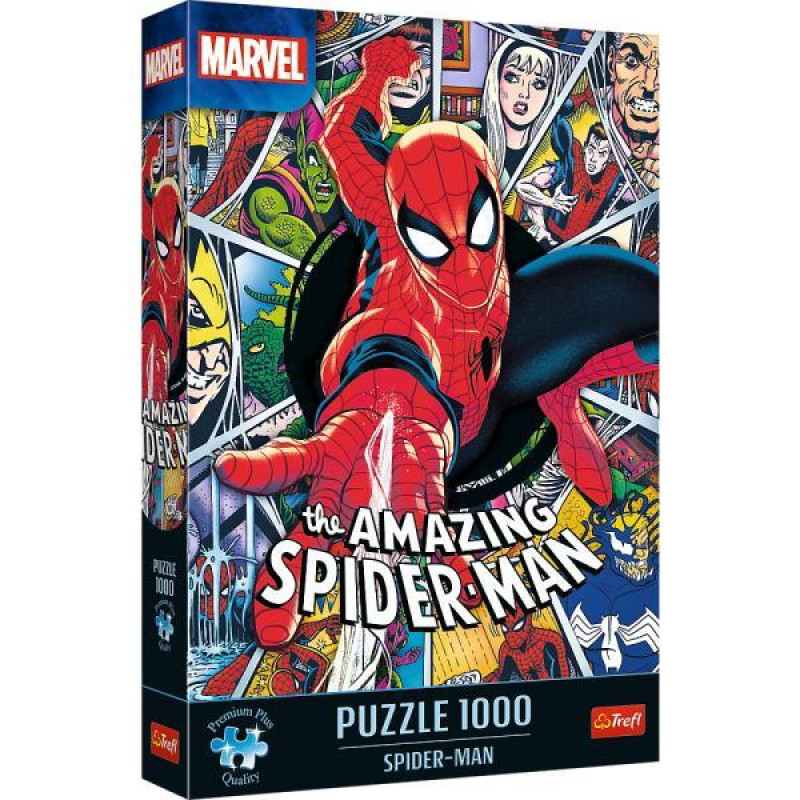 Пазли з Людиною-павуком та його друзями, а внизу – вороги, з якими вони борються. Динамічна сцена наповнена героїзмом та пригодами.Розвивають логіку, увагу та дрібну моторику. Особливість – барвисте зображення битви героїв і ворогів.У комплекті: 160 деталей з щільного картону, картинка з героями, ко..