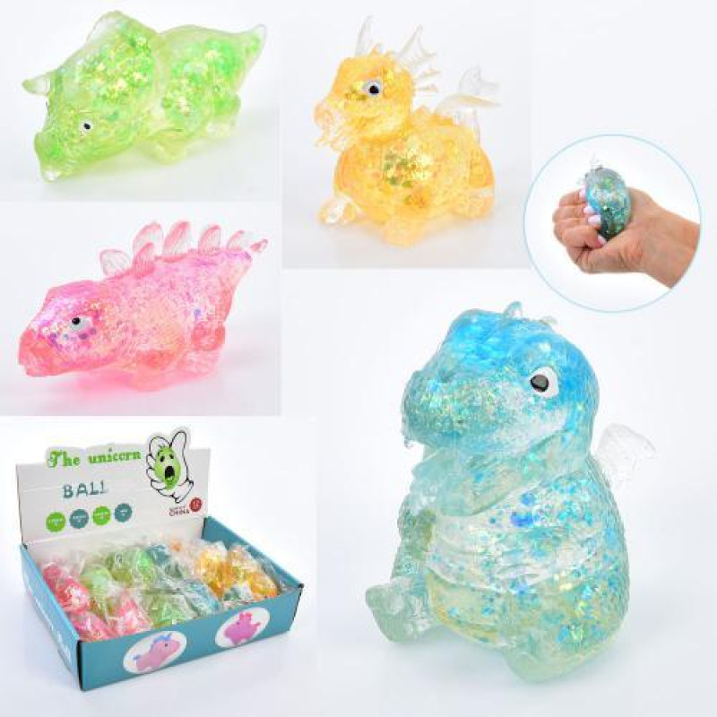 Іграшка динозавр, від 11см, антистрес, тягнеться, глітер, ЦІНА ЗА 1ШТ, 4 види, в дисплеї, 27*20*6,5см, арт: MS4016