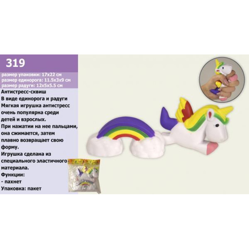 Сквиш Единорог с радугой, 11*3*9см, в пак. 17*22см (264шт)