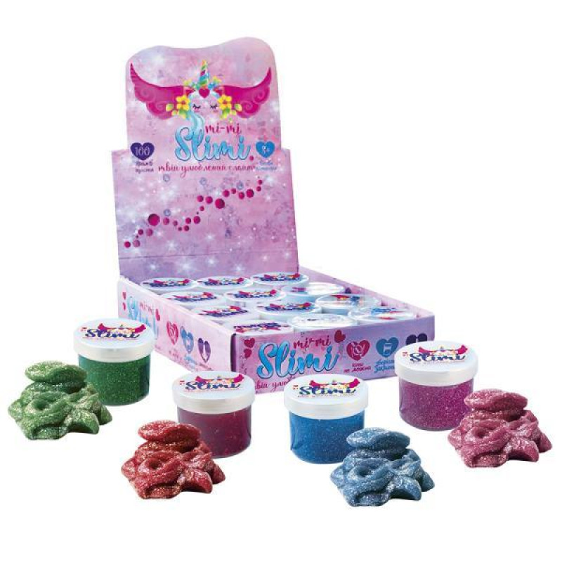 Слайм "Mi-mi Slimi - з глітером" (укр) - 0,100кг, в ассорт., ЦІНА ЗА 1ШТ, в блоці 12 шт, в кор. 72 шт, ТМ Стратег, Україна