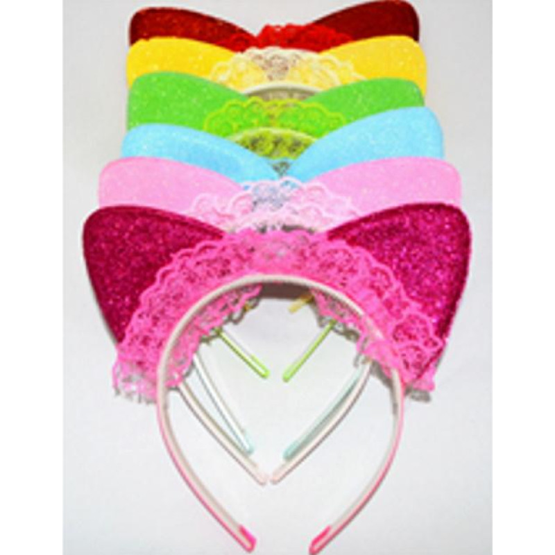 Обідок для волосся "вушка в паєтках", ЦІНА ЗА УП. 6ШТ, у кому. 21*21см, ст: 0106-252..