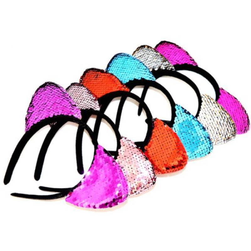 Обідок для волосся "вушка в паєтках", ЦІНА ЗА УП. 6ШТ, у кому. 21*21см, ст: 0106-252..