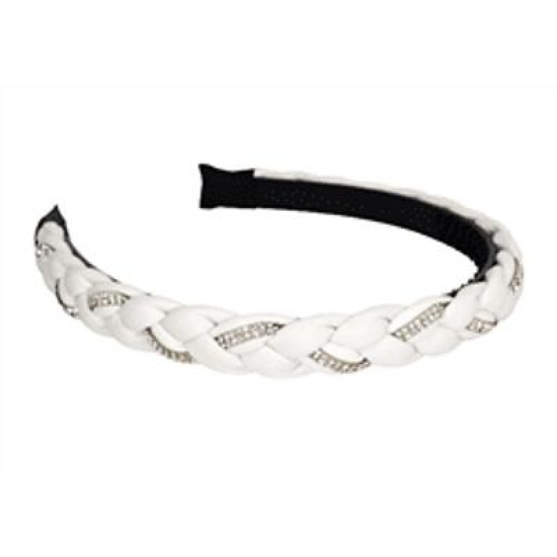 Ободок для волосся коса зі стразами еко-шкіра білий AA-1638..