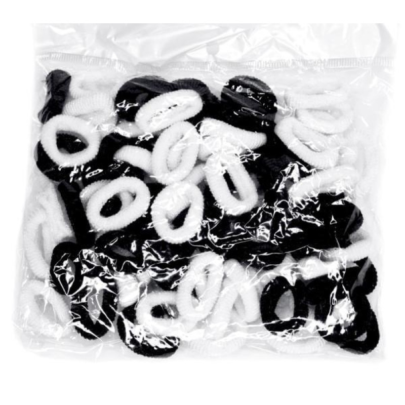 Гумка для волосся мікрофібра чорно-біла, в пак. 22*14см, ст: 0307-1128..