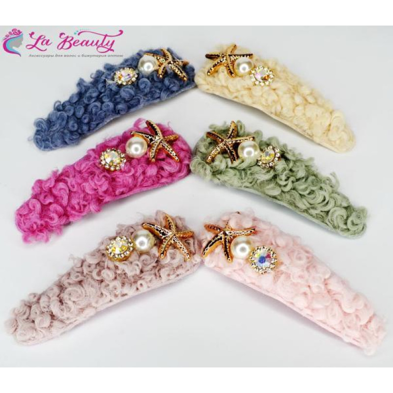 Затискач-хлопушка для волосся "Хутро із зіркою", ЦІНА ЗА УП. 6ШТ, на планш. 27*10см..
