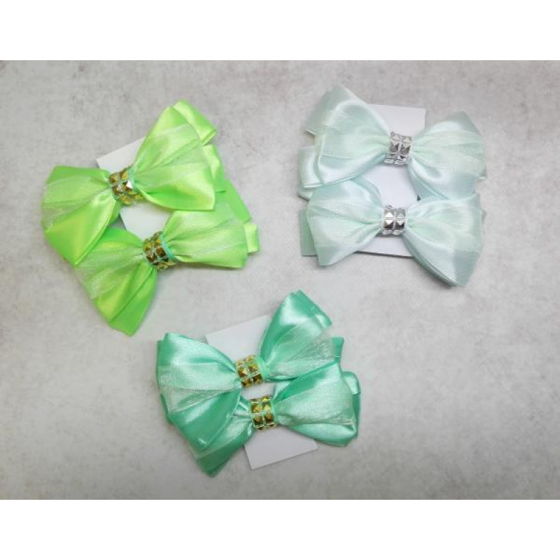 Набір "Бант органза", на гумці, 10*6см зелений мікс, ЦІНА ЗА 2ШТ, Handmade в пак.10*15см