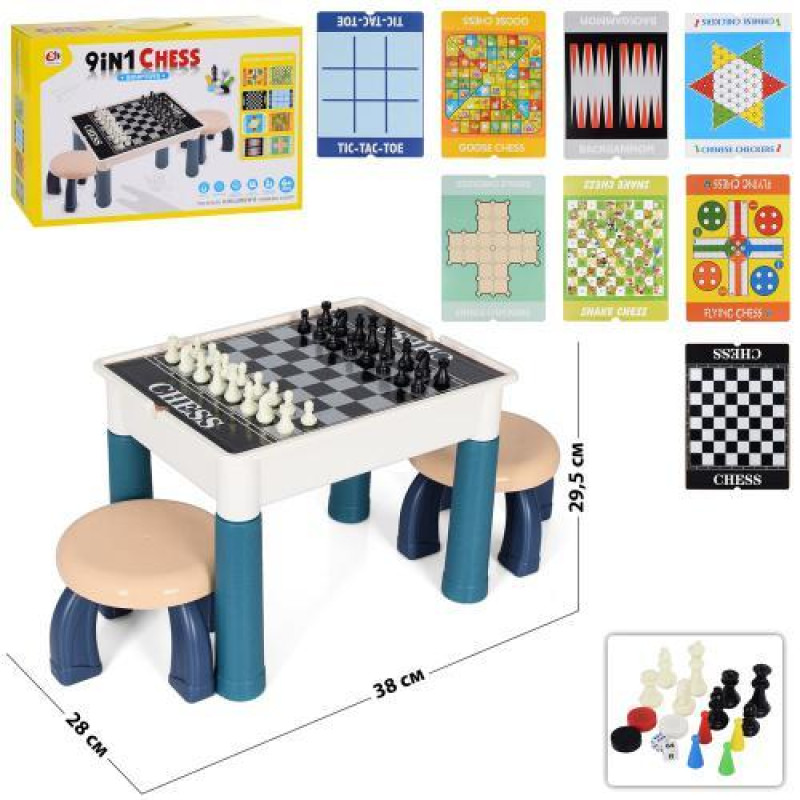 Ігровий столик Настільна гра 9в1, столик 38*28*29,5см, стілець, шахи, шашки, фішки, кор. 43*29*11,5см