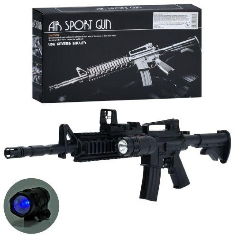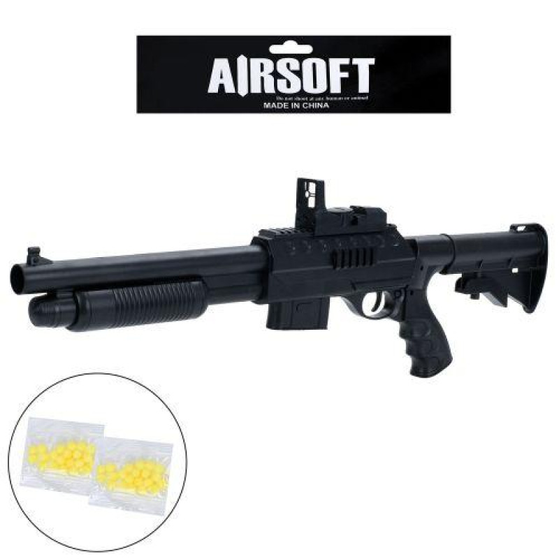 Іграшковий автомат на пульках (приблизна довжина 49–53 см) — пластиковий іграшковий автомат у комплекті з магазином і набором боєприпасів (пластикові кульки діаметром 6 мм). Модель виконана з міцного пластику і працює за пружинним механізмом в одиночному режимі стрільби; ємність магазину — 10 кульок..