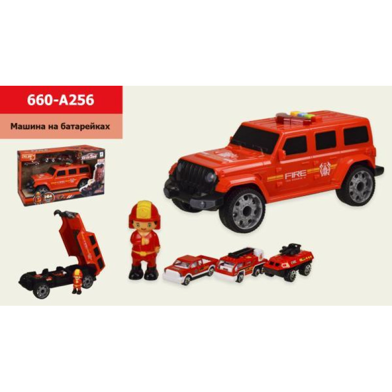 Машина пожежна 30*13.8*12.5см бат., 3 машинки та фігурка пожежного в комплекті, світло, звук, кор. 35,5*18*20см