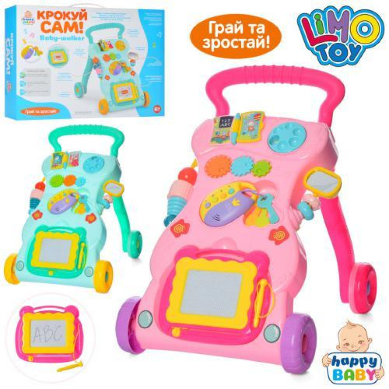 Каталка-ходунки LIMO TOY 40*32*40,5см, шестерні, досточка для малювання ч/б, музика, світло, сортер, 2 кольори, на батар., в кор. 36*33*11см, ст.: HB0041AB..