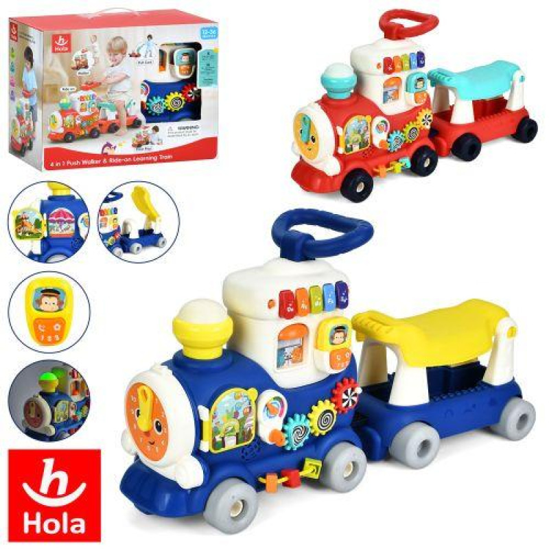 Каталка-ходунки 4в1 (каталка, толокар, ігровий центр), поїзд 38см з причепом, музика, звук, світло, шестерні, годинник*тріскачка, 2 режими гри, 2режими гучності, рухливі деталі, 2 кольори, на бат. в кор. 48*39*23см арт: HE8990-HE8990B