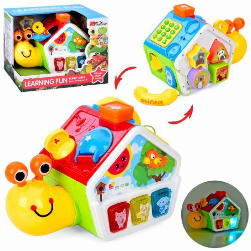 Гра равлик+будиночок, 24см, їздить, піаніно, телефон, музика, звук(англ), звуки тварин, світло, сортер (4 фігури), дзеркало, рухливі деталі, 2 режими, на батар., в кор. 27*19,5*16см арт: 35969