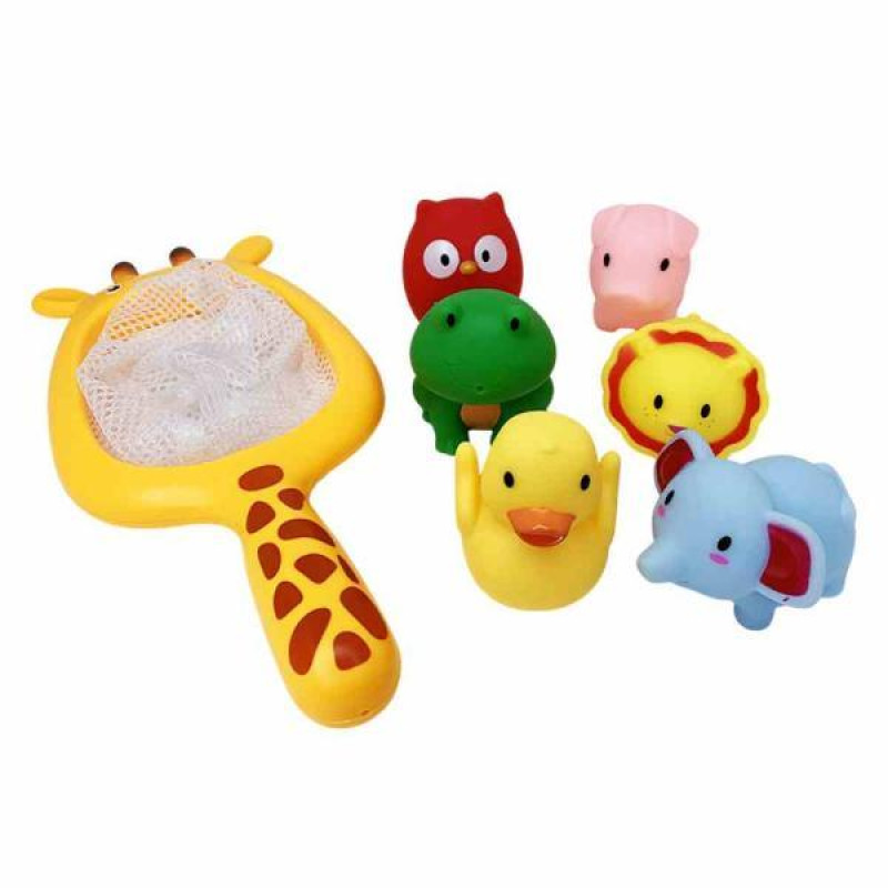 Набір для купання з яскравим сачком у вигляді жирафа та шістьма гумовими іграшками перетворить щоденні водні процедури на захопливу гру. Веселі фігурки різних тварин легко тримати маленькими ручками, що сприяє розвитку дрібної моторики, координації рухів і тактильних відчуттів.Іграшки виготовлені з ..