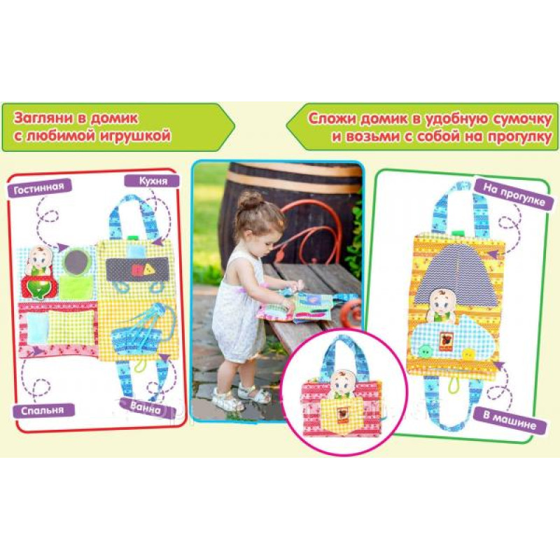 Тактильний навчальний килимок допоможе малюкові пізнати навколишній світ, розвинути моторику, абстрактне та логічне мислення, вивчити кольори, рахунок та алфавіт. Основні характеристики товару: Будинок-сумочка, упаковка: пакет 36 х39 см., вир Україна..
