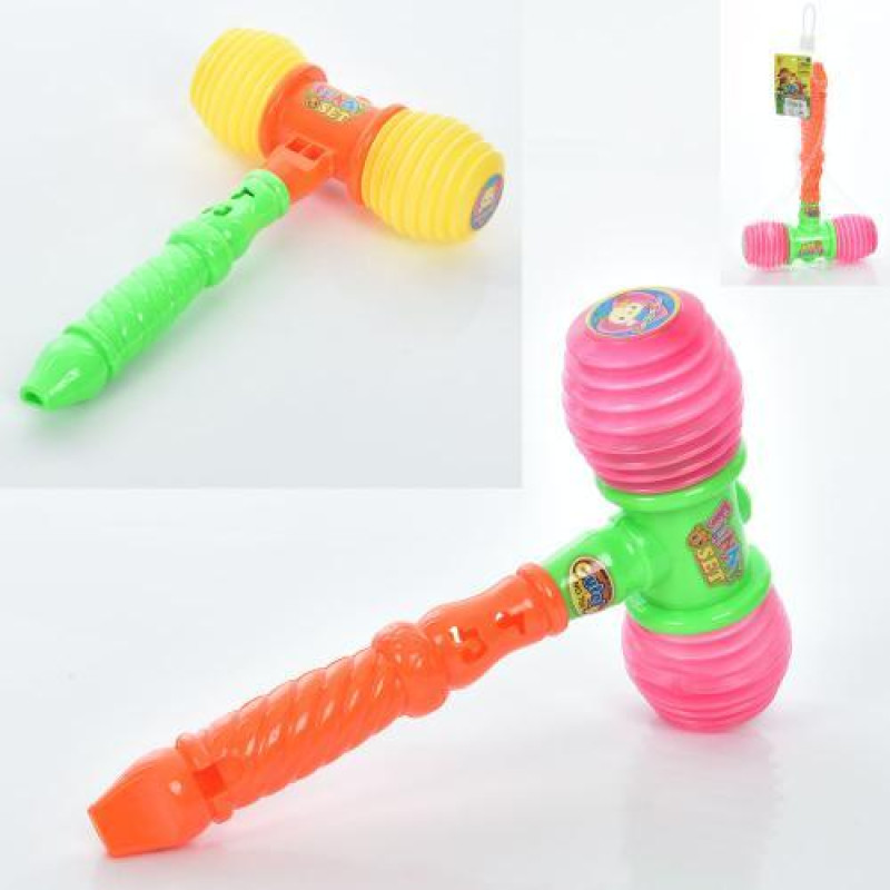 Бум-бум, Дзінь-дзінь, Пік-пік - з радістю і захопленням захлинається своєю простою пісенькою музичний молоточок. І сміється малюк, і стукає: по стіні та по підлозі, по дивані та по подушці, по коті та по мамі. Просто, але весело.