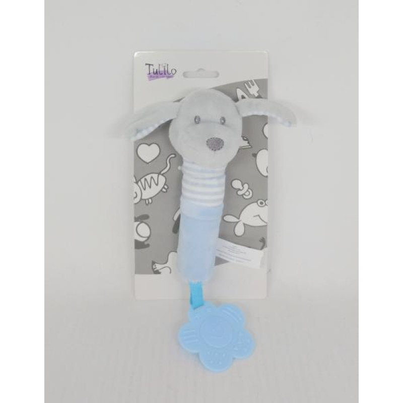 Брязкальце з прорізувачем плюшеве "Песик" 17см, блакитний, на планш. 23*14см, ТМ Tulilo, Польща..