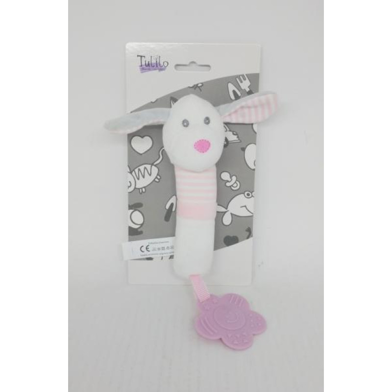 Брязкальце з прорізувачем плюшеве "Песик" 17см, рожевий, на планш. 23*14см, ТМ Tulilo, Польща..