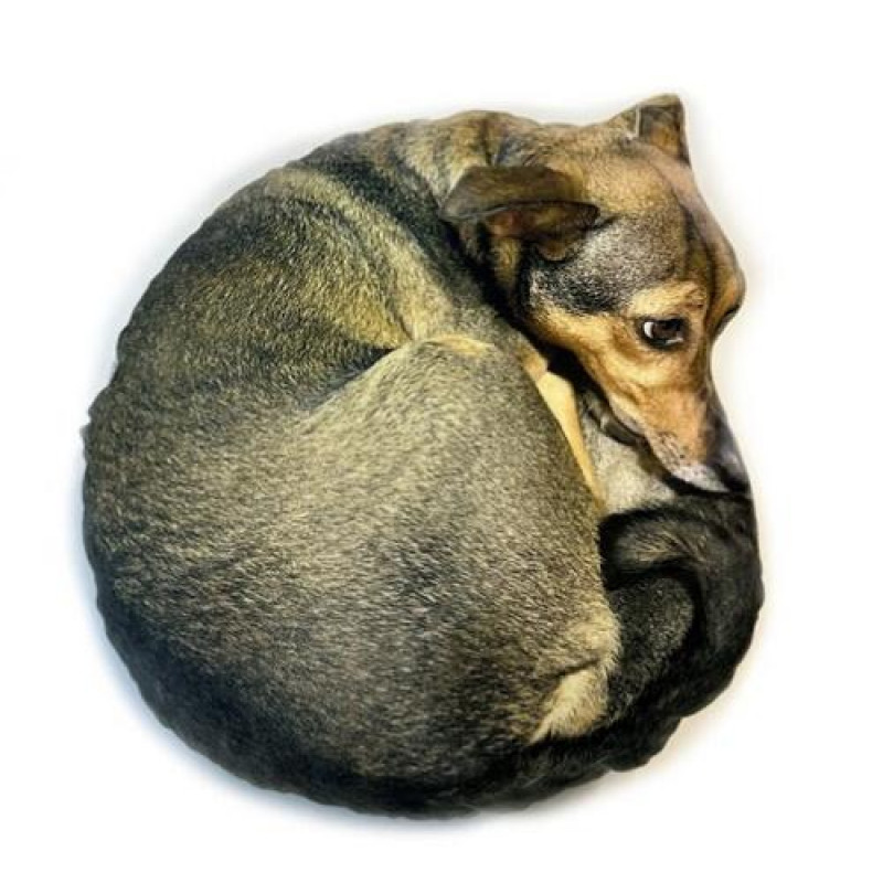 Плюшева м’яка іграшка у вигляді Собаки Мані, яка згорнулась у клубочок, ніжно обіймає себе хвостиком і сумно поглядає у далечінь… Здається, вона когось дуже чекає. Її глибокі оченята та реалістичні риси викликають бажання пригорнути і забрати додому.Іграшка виготовлена з м’якого велюру вельбо — мате..