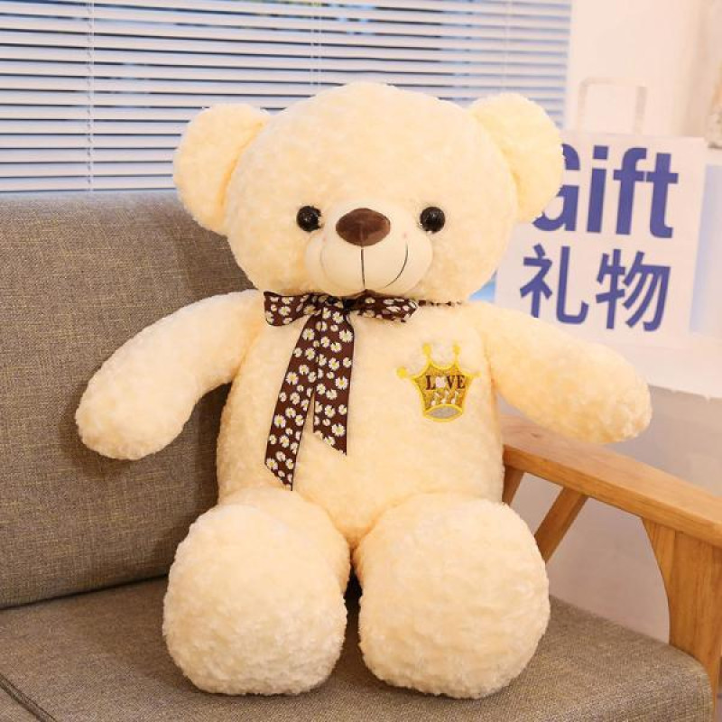 М'яка іграшка ведмідь з короною та стрічкою, білого кольору, 70см, арт: C22