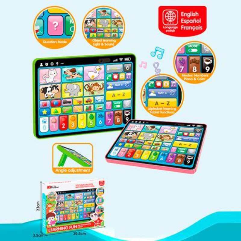 Навчальний планшет розміром 21,5*15,5см — це чудовий спосіб зацікавити дитину навчанням з раннього віку. Безпечний, яскравий і захопливий, він допоможе освоїти основи мов, розвинути моторику, уяву та логіку.1. Три мови в одному планшеті:Англійська, французька та іспанська — планшет містить понад 90 ..
