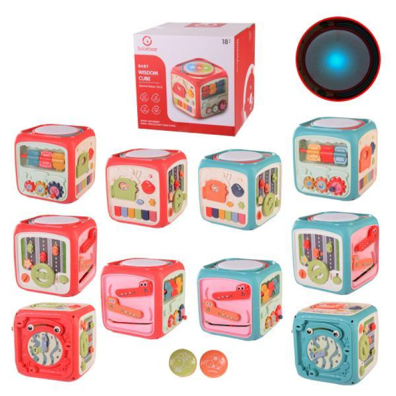 Игровой бизикуб 6 в1 18*18*18см, каждая панель активна, звук, свет, в кор. 21*20*20см (12шт)