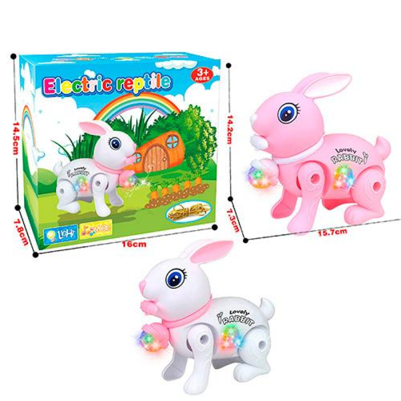 Музична іграшка заєць 16см, ходить, музика, світло, 2 кольори, на бат., кор. 16*14,5*8см