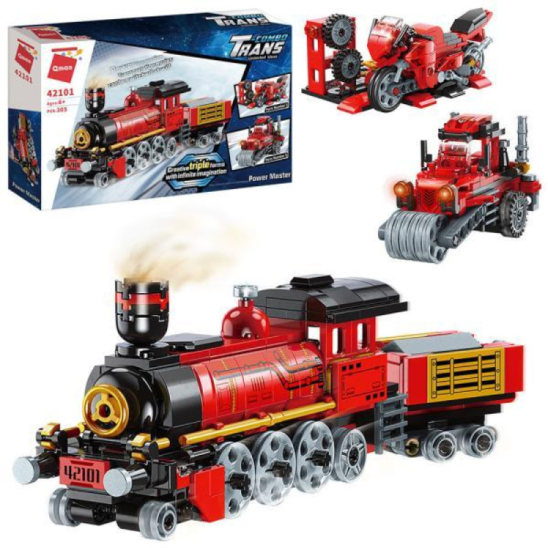 Конструктор 3 в 1 (поїзд, будтехніка, мотоцикл), 305дет, кор. 31,5*19*5см..