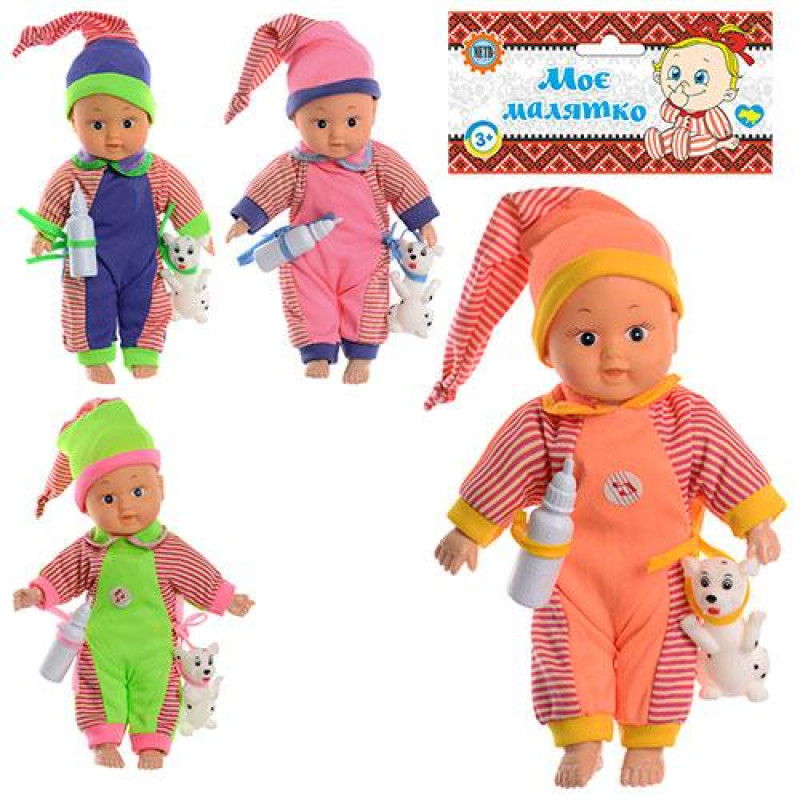 Лялька Женечка, м'якотіла, 22см, муз, собачка, пляшечка, 4 види, кімн. 14*32*6см, ст: 9008..