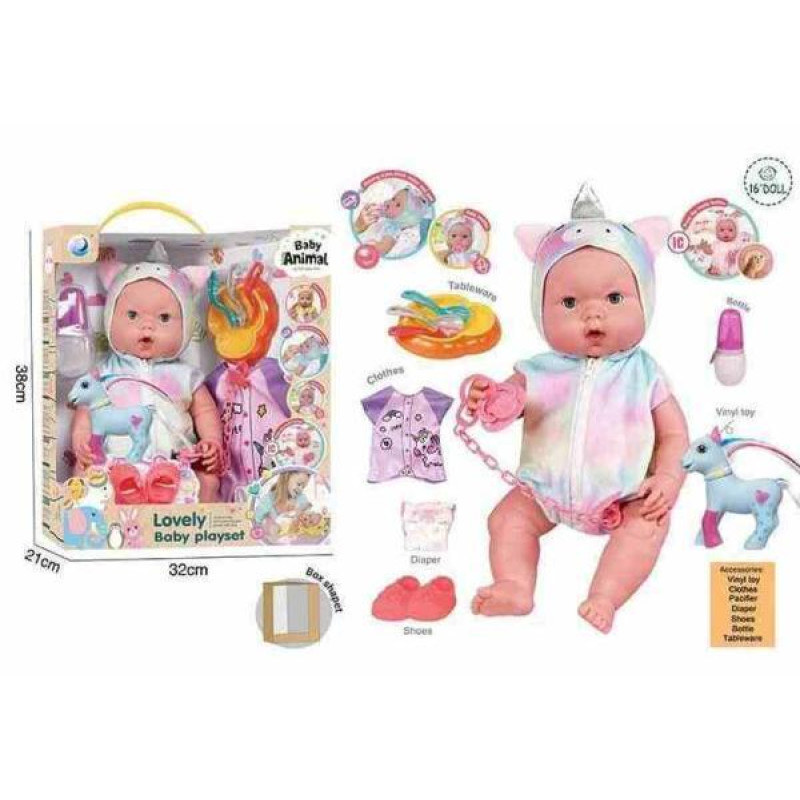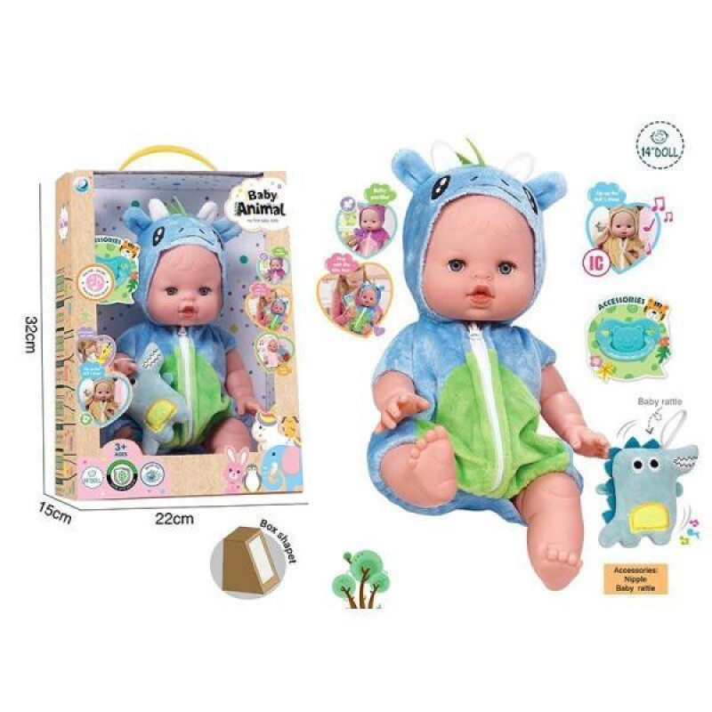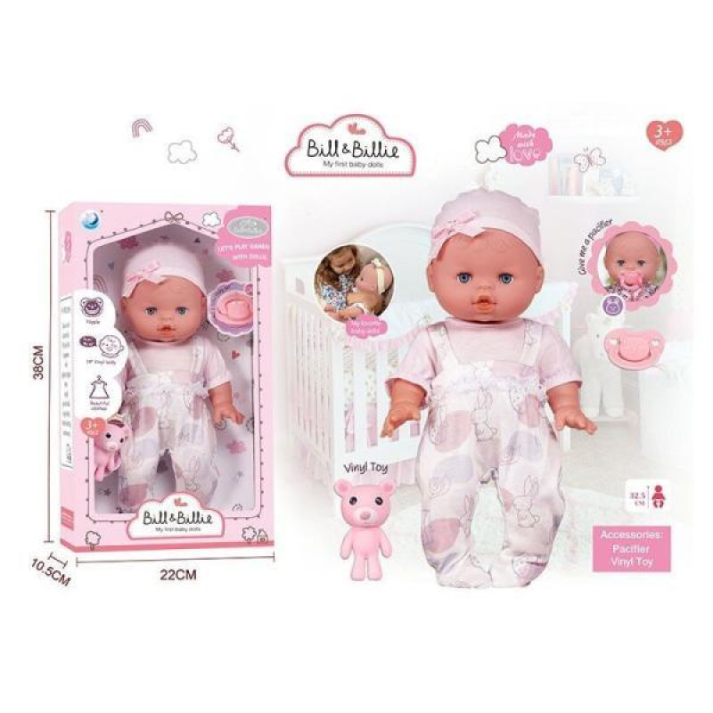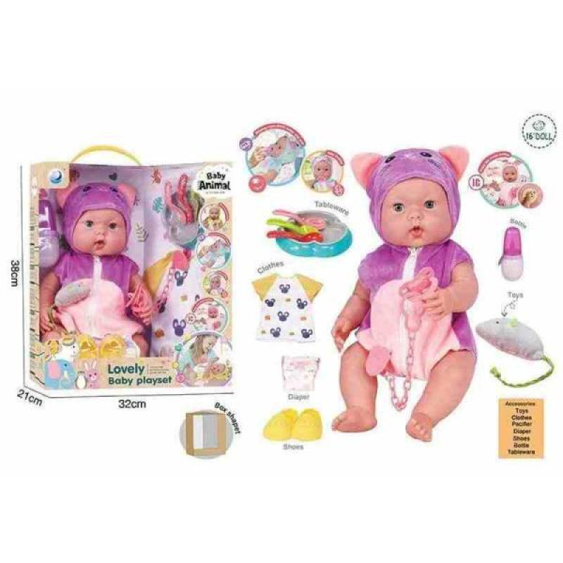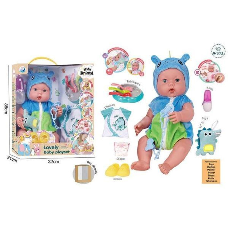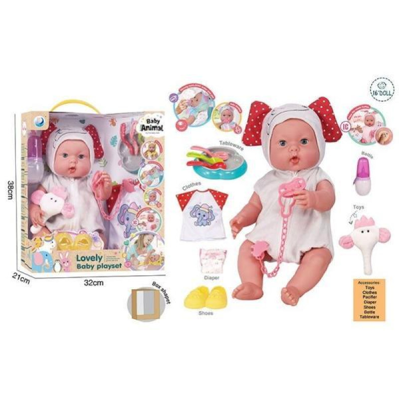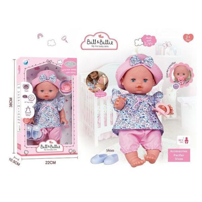 Пупс 39см, музичний чіп, закриває очі, знімний одяг, пустушка, взуття, підгузок, ходить в туалет, пляшечка, тарілочка, ложечки, в кор. 38*31*21см арт: DH2377F