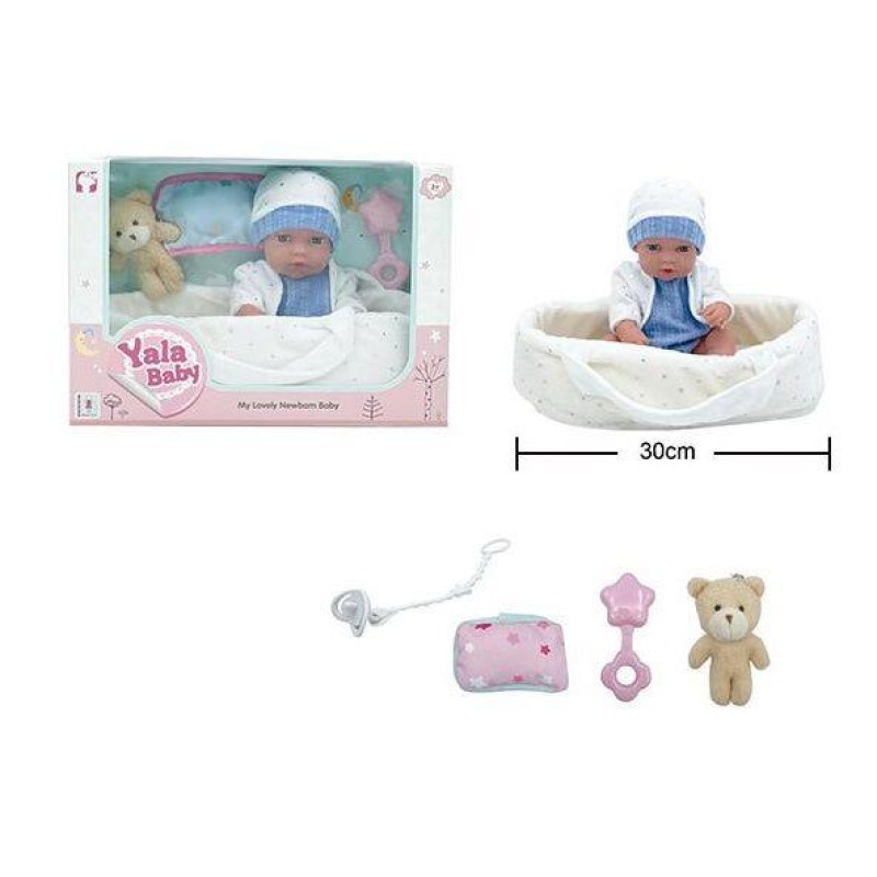 Пупс 33см, п'є-пісяє, звук+музика(укр), пісня, горщик, пляшечка, соска, підгузок, 2 види, на бат(табл), в кор. 30*39*17,5см арт: YL2435A-G-J-DM-UA