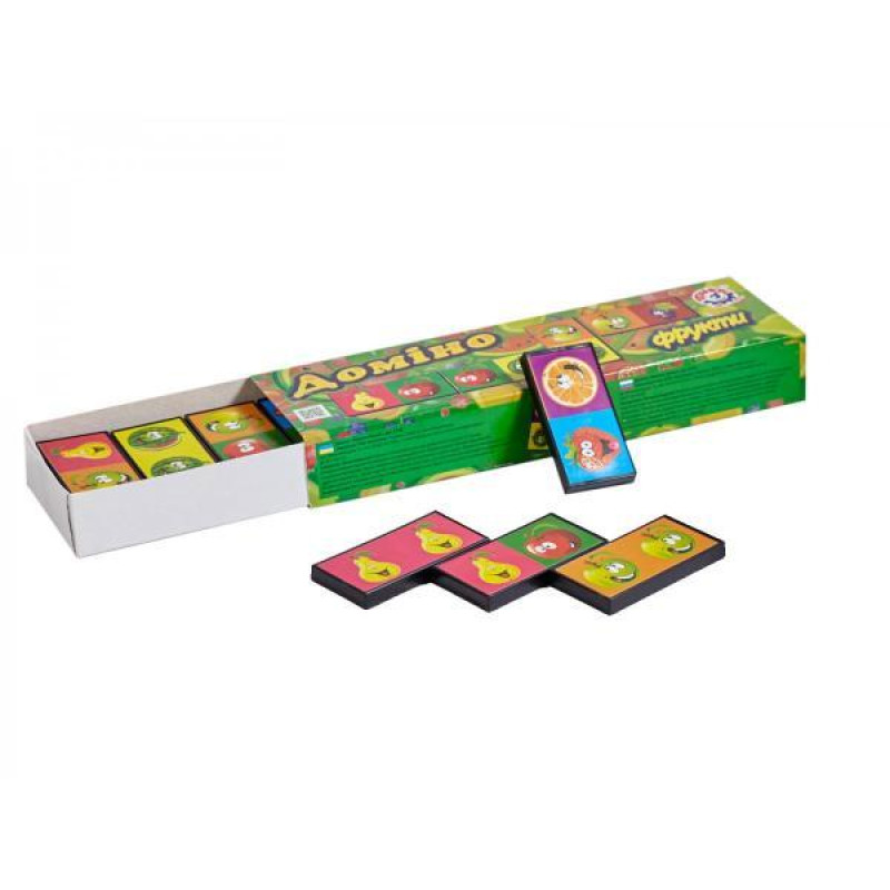Настільна навчальна (дидактична) гра для дітей дошкільного та молодшого шкільного віку. Доміно «Фрукти», пластикові деталі, упаковка: коробка 31*4*18см, Україна, ТМ Колорпласт..