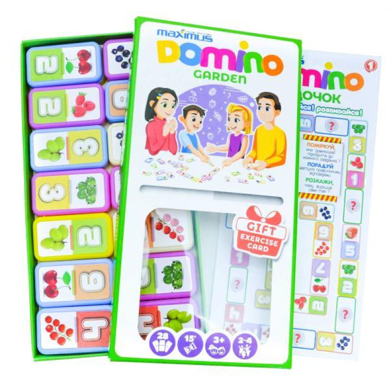 Розвиваюча гра Доміно "САДОК", в кор. 23*13*1,5см, ТМ MAXIMUS, Україна..