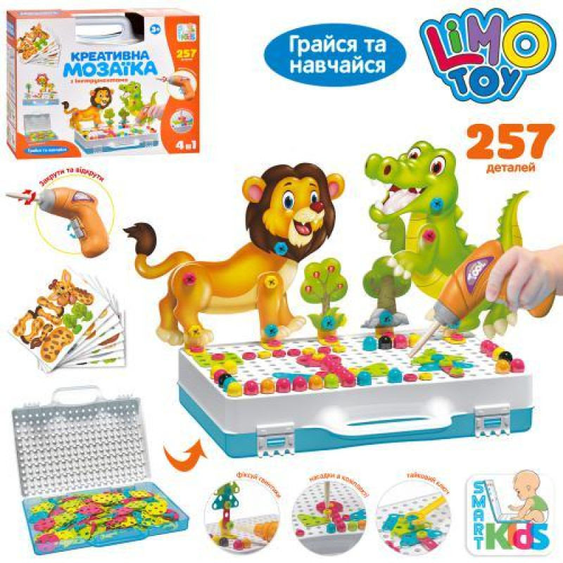 Мозаїка 3в1, на шурупах, LIMO TOY шуруповерт, 249дет, на бат., у валізі, в карт.вертці, 31*24,5*6,5см..
