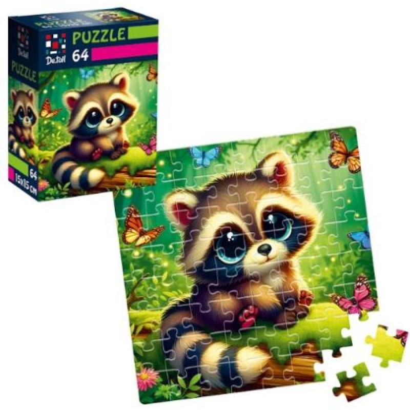 Пазли De.tail. Єнот з метеликами. 64 детали, в кор. 10*7*3см, ТМ Vladi Toys, Україна арт: DT1234-12