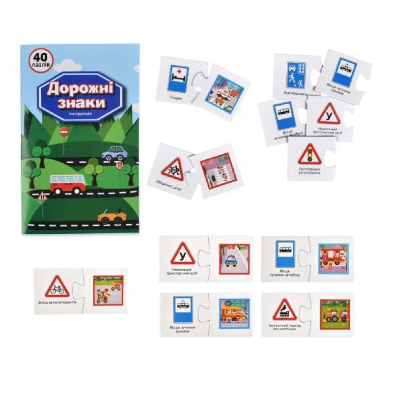 Набір парних пазлів «Дорожні знаки» — це пізнавальна гра для дітей від 3 років, що допомагає легко й цікаво вивчити основні дорожні знаки, сигнали світлофора та правила безпечної поведінки на дорозі. Підбираючи правильні пари, малюк не лише тренує увагу й логічне мислення, а й формує базові знання з..