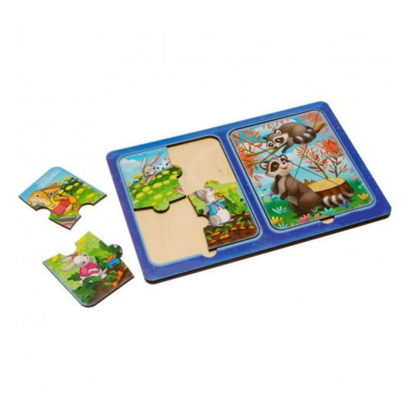 Пазли в рамці "Зайчики та єнотики", 23*16см, ТМ Ань-Янь, Україна...