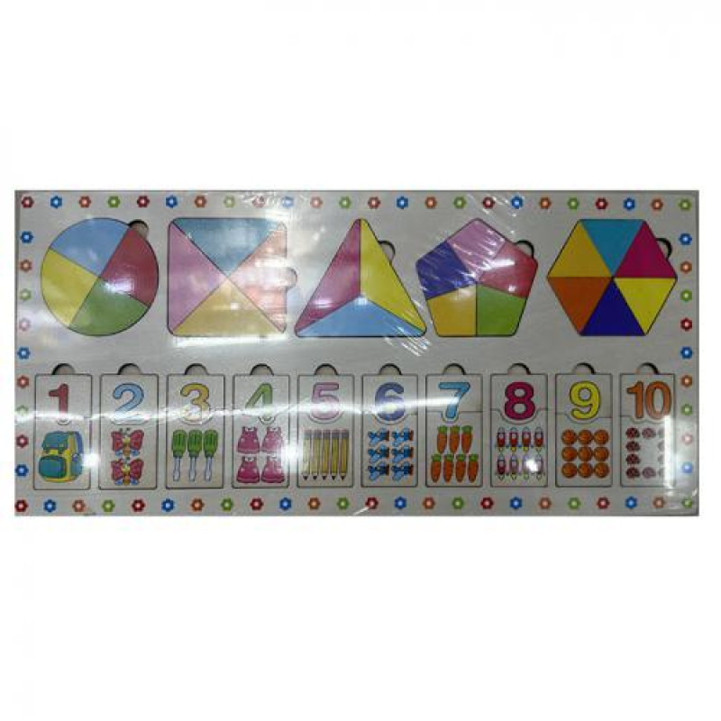Дерев'яна іграшка Рамка-вкладиш геометричні фігури-пазли 5шт, цифри-пазли арт: MD0870