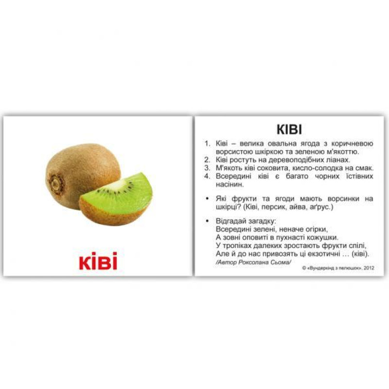 Картки міні українські з фактами "Фрукти" 20шт двосторонні, в пак. 8*10см, ТМ Вундеркінд з пелюшок..