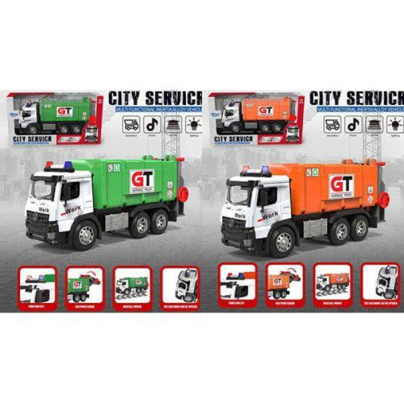 Сміттєвоз інерція, 27,5см, звук, світло, рухливі деталі, гумові деталі, метал+пластик, 2 кольори, на бат(табл), в кор. 39,5*21*11см арт: HJ03AB