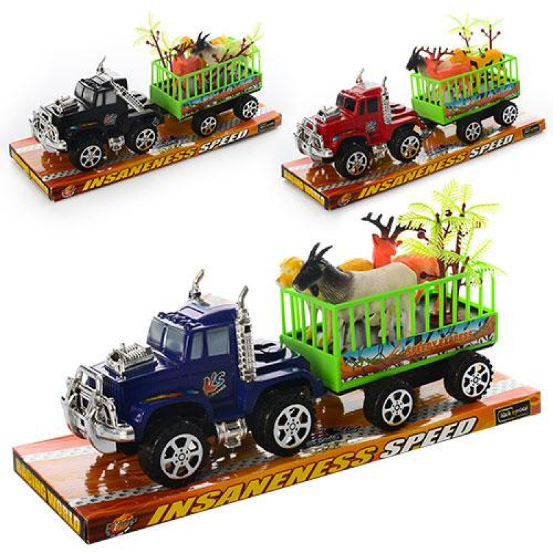 Машина-джип, інерц., з причепом, 28см, тварини 3шт, 3 кольори, в слюді, 31,5*12*10,5см, арт: 906-29..