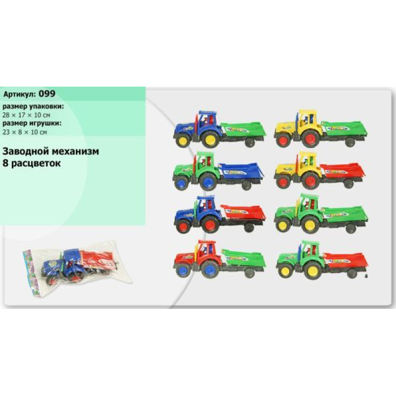 Трактор, з причепом заводний, 2 кольори, в пак. 24*8*9см..