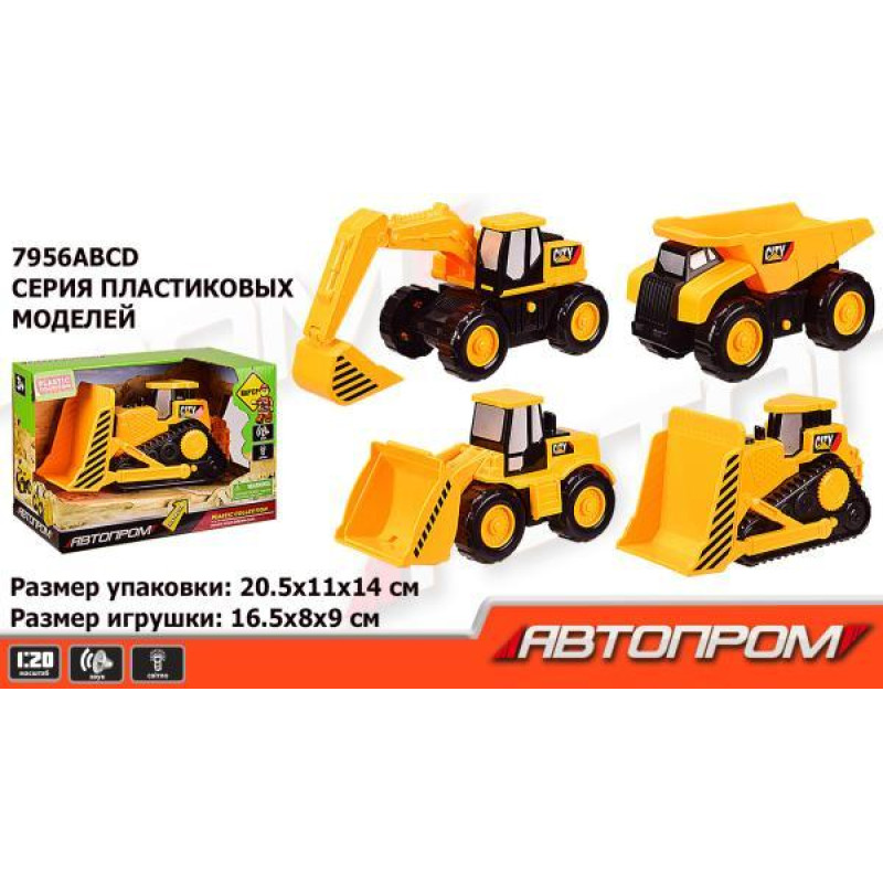 Будтехніка інерція "АВТОПРОМ" бат., світло, звук, 4 види, кор. 20,5*11*14см..
