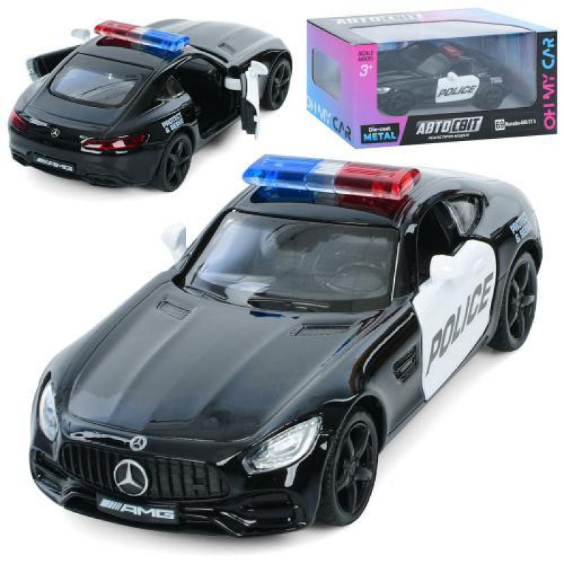 Машина АвтоМир, Mercedes Benz GTS AMG 2018, метал, інерція, поліція, 12см, відчиняються двері, гумові колеса, кор. 15,5*7*7см..