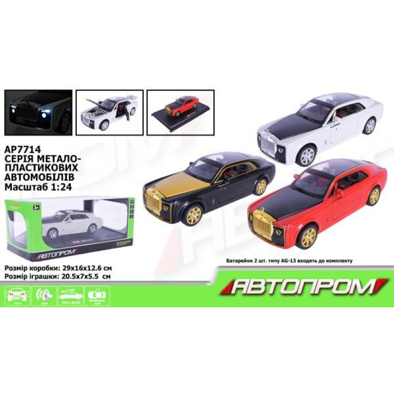 Машина мет. АВТОПРОМ 3 кольори, бат, світ., звук, двері відкр., в кор. 29*16*12,6см арт: AP7714