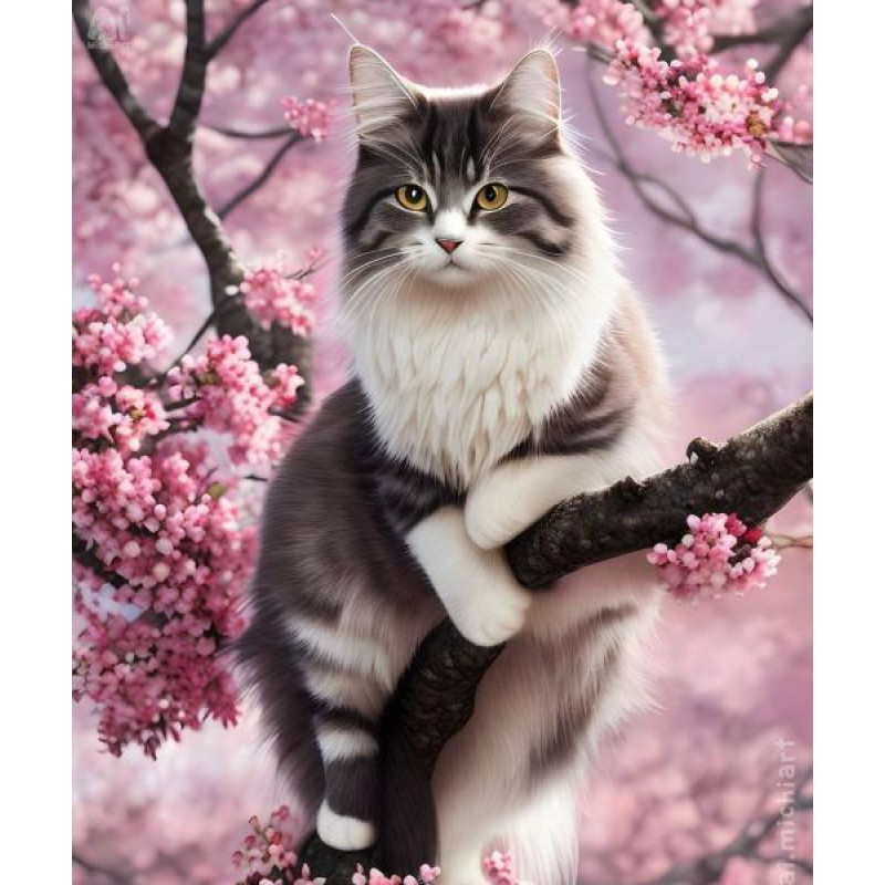 Алмазна мозаїка "Кіт на квітучій гілці", 30*40см, ТМ Dreamtoys, арт: S20048