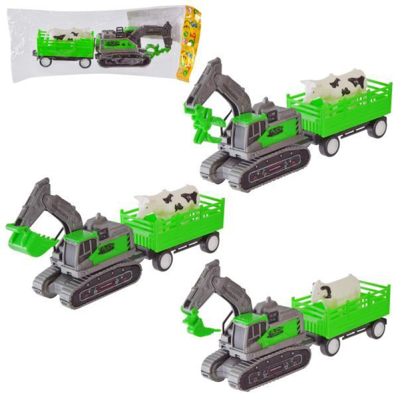 Екскаватор 3 види, з причепом та твариною, пак. 25*4,5*6см, ст: 268-16..