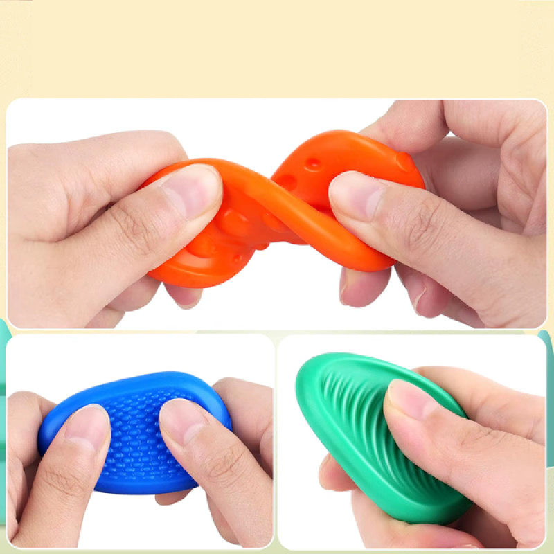 Масаж для мозку – як це працює?Камінці виготовлені з м’якого силікону, мають гладку поверхню та зручну форму. Їх можна стискати, крутити або перебирати в руках. Це активує нервові закінчення, стимулює кровообіг у мозку, покращує концентрацію, зменшує тривожність і сприяє заспокоєнню.