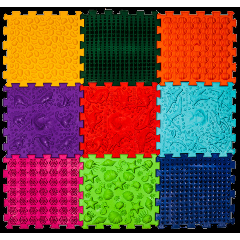 Масажний килимок складається з 9 пазлів, виробляється з гігієнічного, гіпоалергенного матеріалу на основі ПВХ.