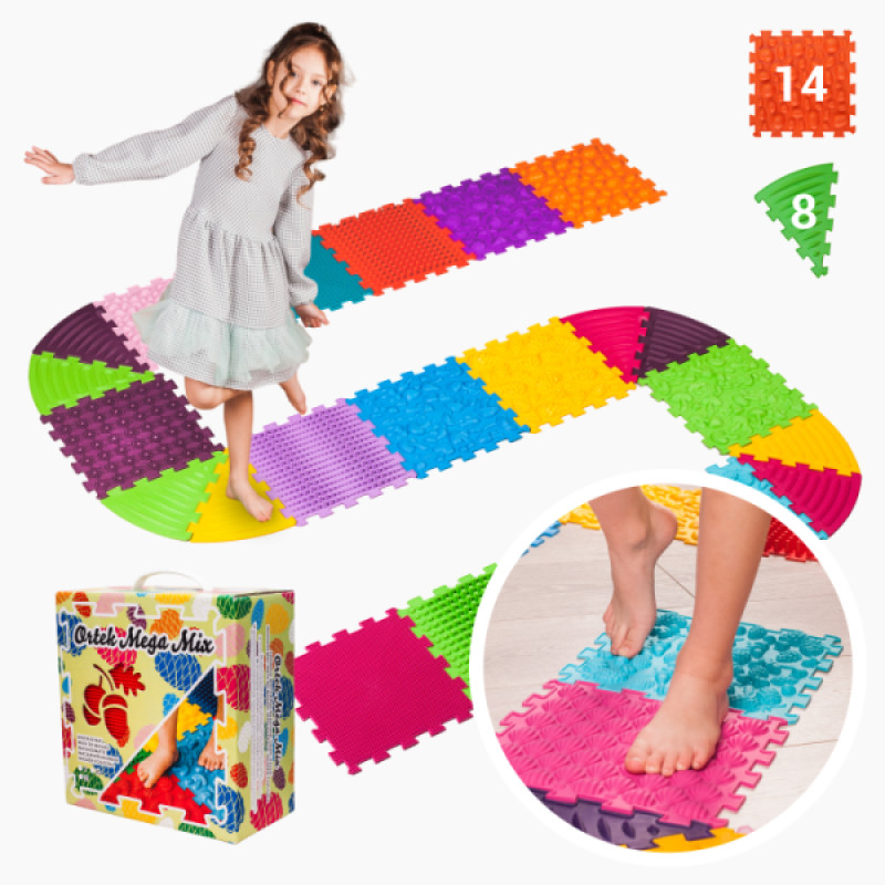 Пробігтися босоніж зеленою травою, круглими камінчиками і м'яким пісочком - не тільки весело, але й корисно. Але як бути, якщо такої можливості немає? Дитячі масажні та ортопедичні килимки, за якими із задоволенням тупотять дітки, можуть бути не тільки в кабінеті лікувальної гімнастики або в лікаря, а й удома. Місця багато не займають, а от здоров'я додають.